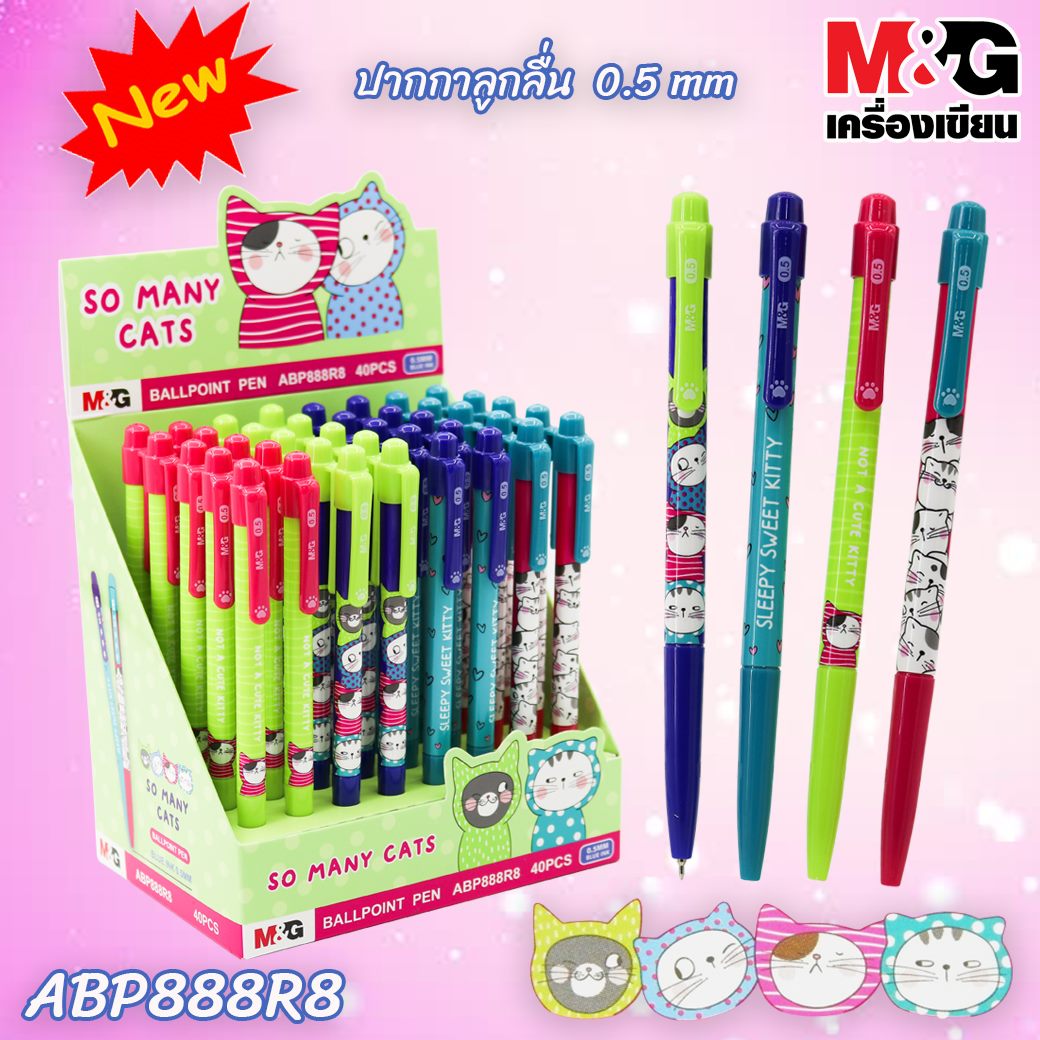 - The M&G Cats retractable ballpoint pen boasts a bright and colorful design.