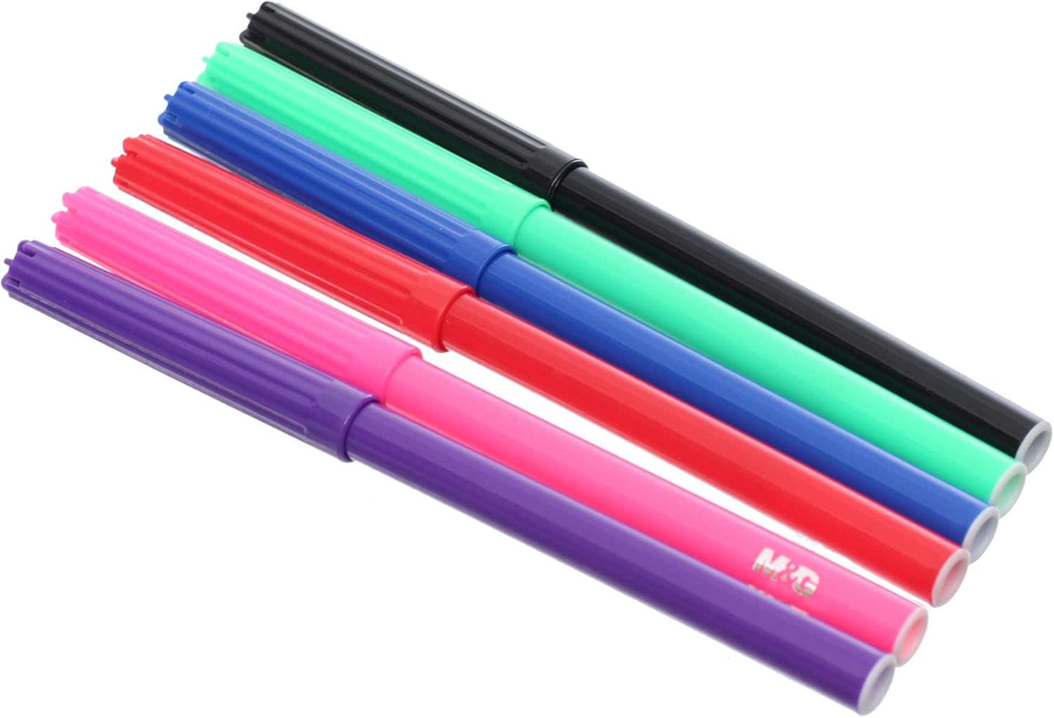 M&G Chenguang WaterColor S-Felt Tip Pens, Bright Art Creations, Fine Tip, Non-Toxic Ink, 6 Colors - No:ACP901FL