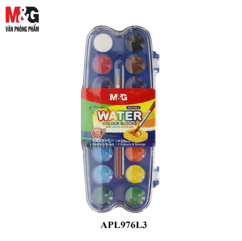 M&G Chenguang Watercolour Water Color Blocks Cake w Palette & Brush - 12 Colors - No:APL976L3