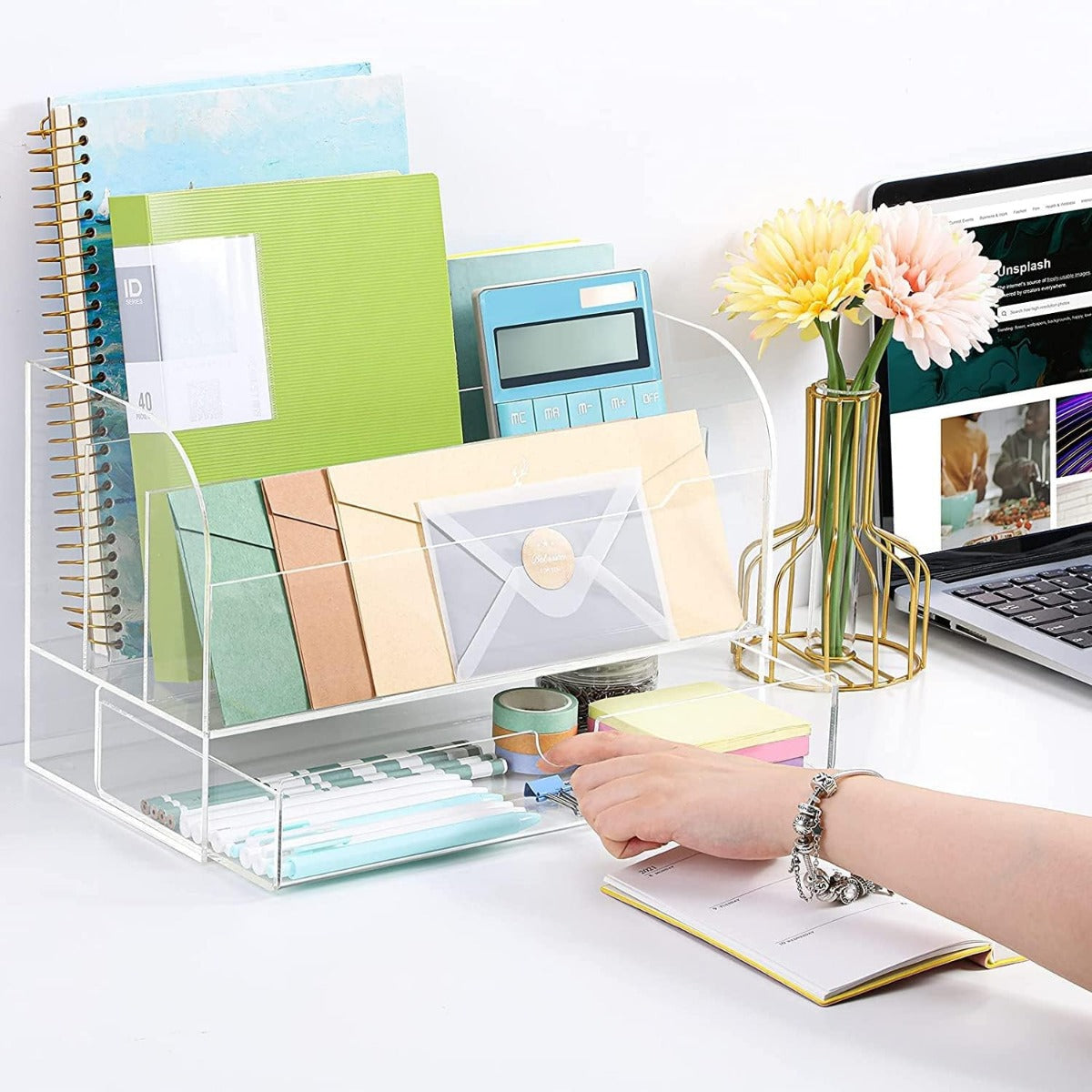 - Clear Acrylic Office Organizer: Made of sturdy and solid acrylic, taking full advantage of your workspace and keep your desktop neat. Perfect for storing pens, pencils, mail, envelopes and flyers.