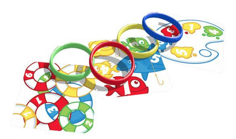 Players simultaneously race to stack different colored rings based on the order shown on the current challenge card.
