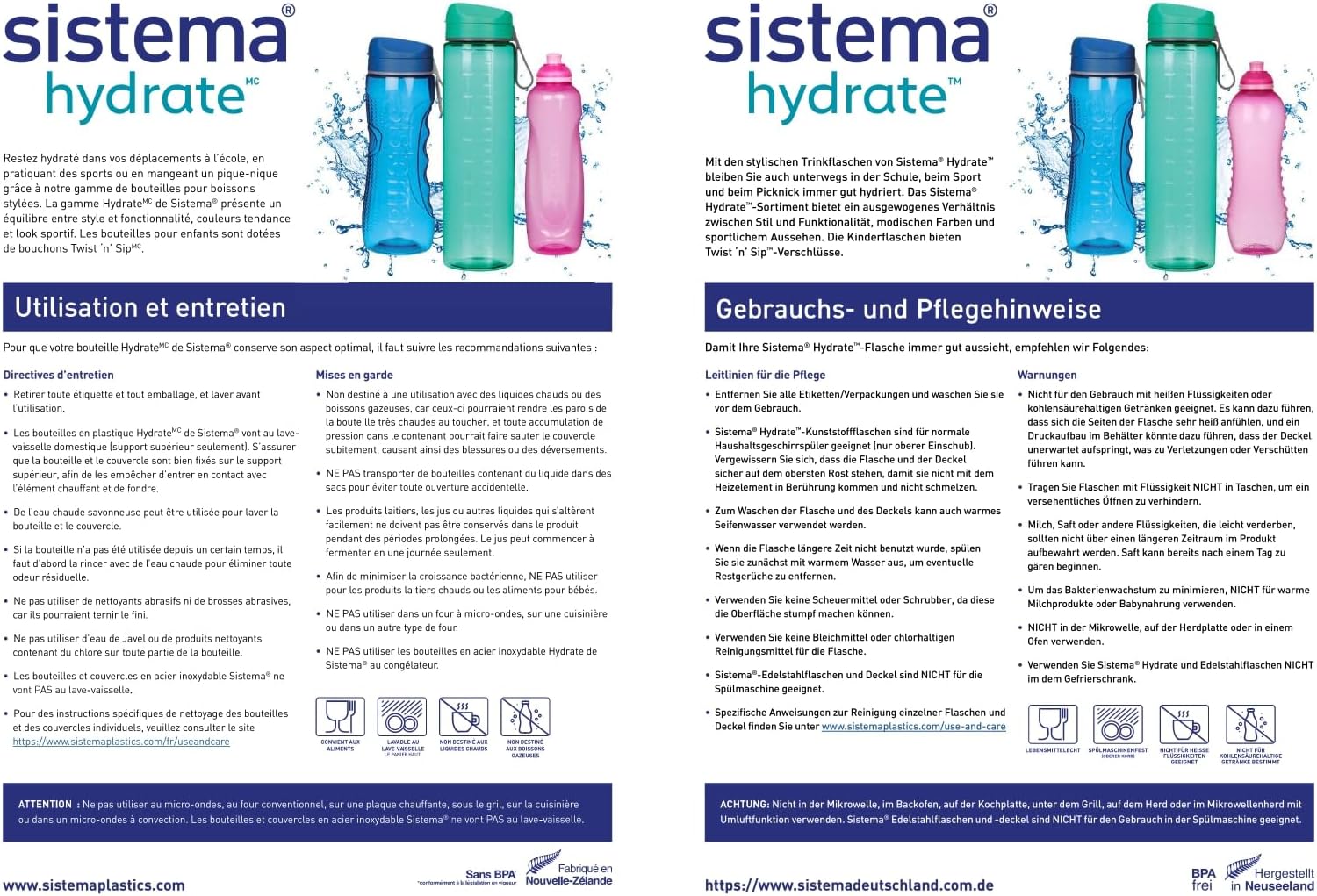 - The Sistema Hydrate Quick Flip bottle is perfect for school, work, sports and picnics to keep hydrated on the go.