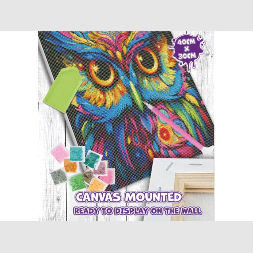 - 40cm x 30cm Owl canvas mounted Diamond Painting kit is the perfect rainy day activity.