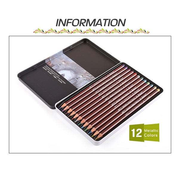- Name: 12 Colors Artist Metallic Colour Pencil