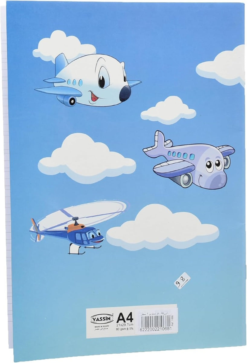 - Yassin Notebook, 70 Sheets A4 with 3 Lines and 60 Staples for Schoolwork
