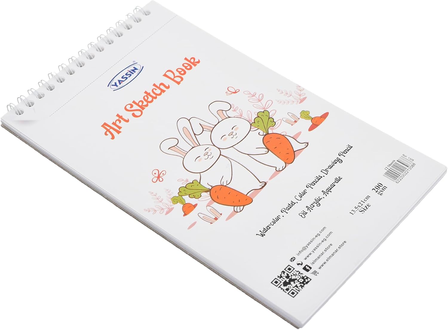 - Yassin White Sketchbook, 12 Sheets 15x21cm Wire-Bound for Art and Sketching
